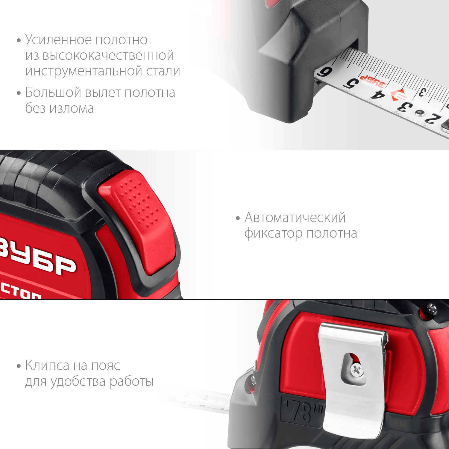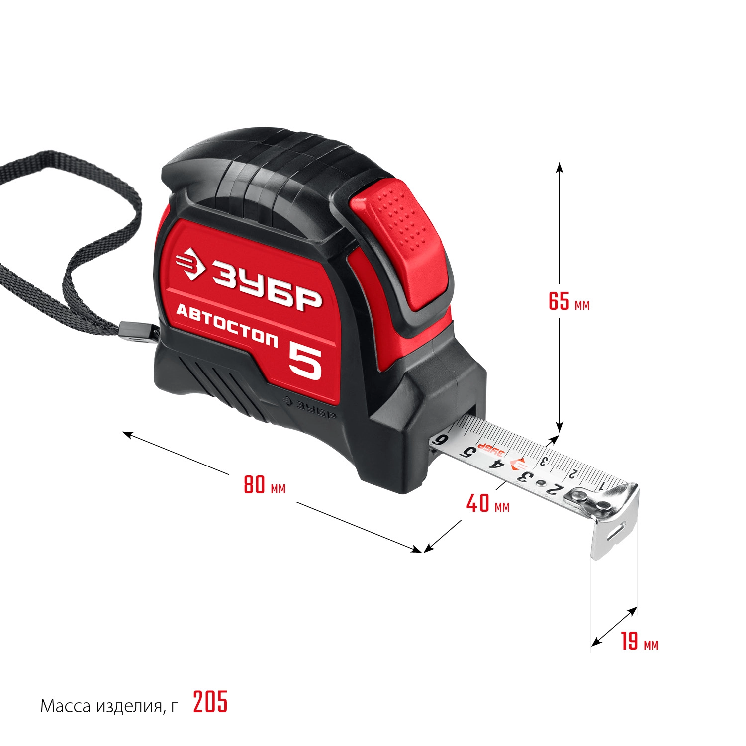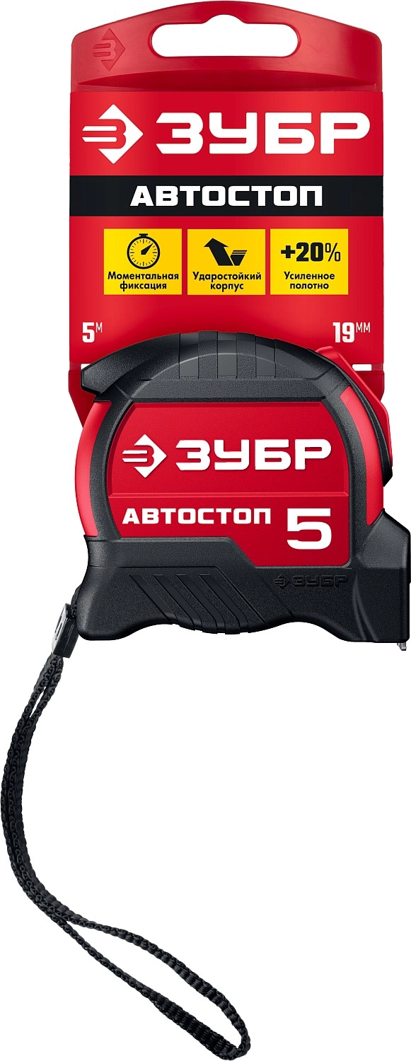 ПроизводителиРулетка 5м/19мм, автостоп, ABS+TPR корпус, быт. "АВТОСТОП" (34052-05-19_z01) ЗУБР