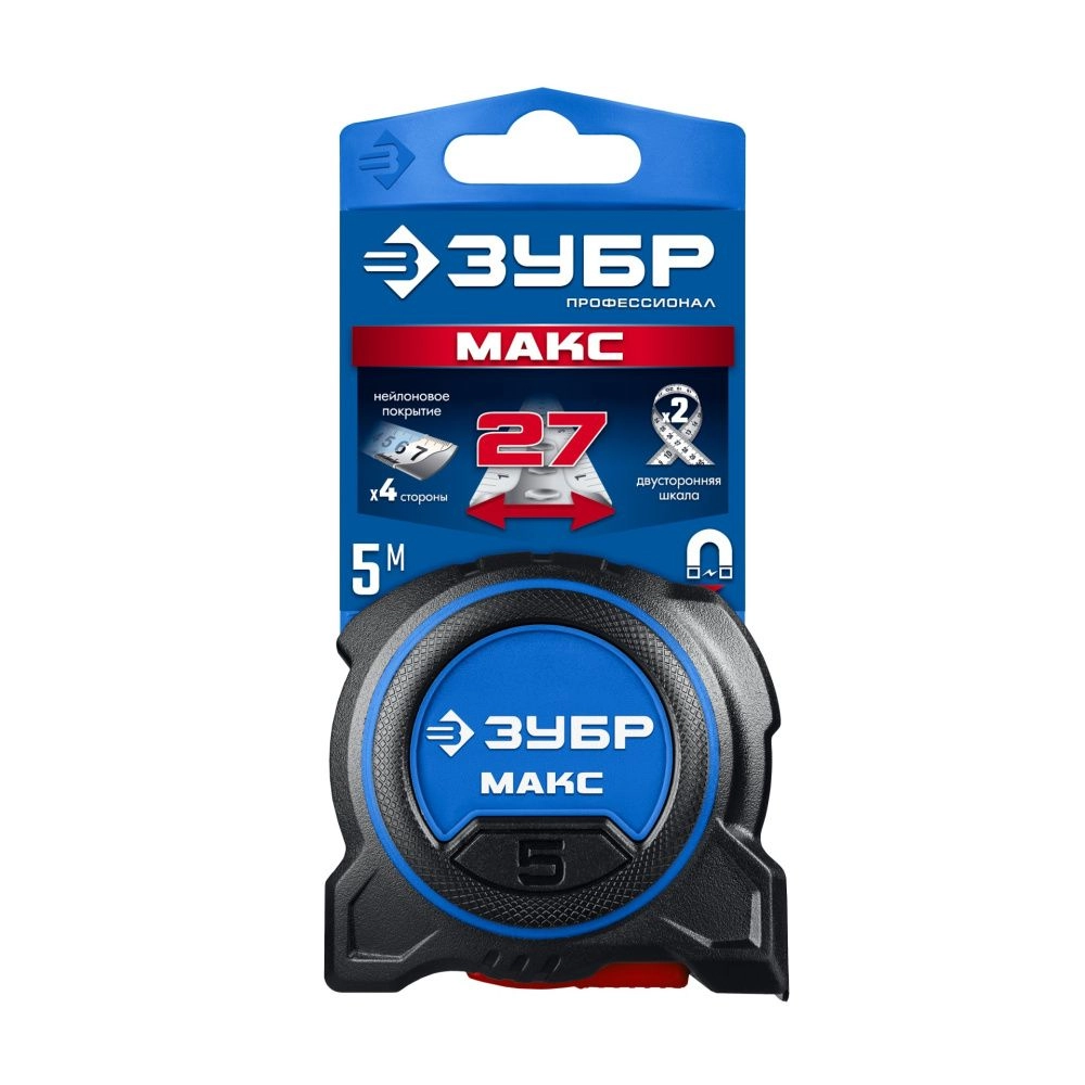 ПроизводителиРулетка 5м/27мм, нейлон. покр.,двухстор.шкала, магн., прорез. корпус, быт. "МАКС" (34060-05-27) ЗУБР