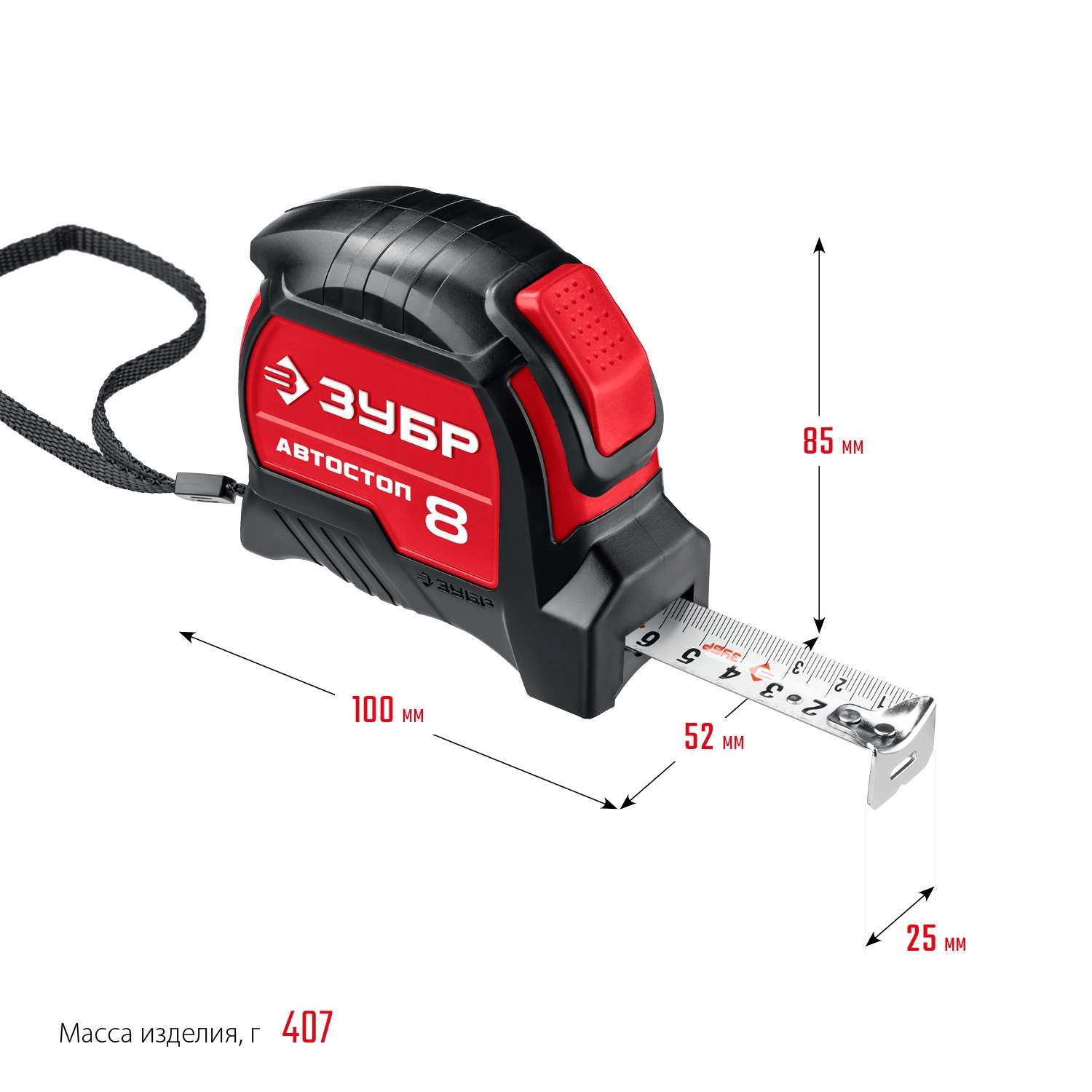 ПроизводителиРулетка 8м/25мм, автостоп, ABS+TPR корпус, быт. "АВТОСТОП" (34052-08-25_z01) ЗУБР