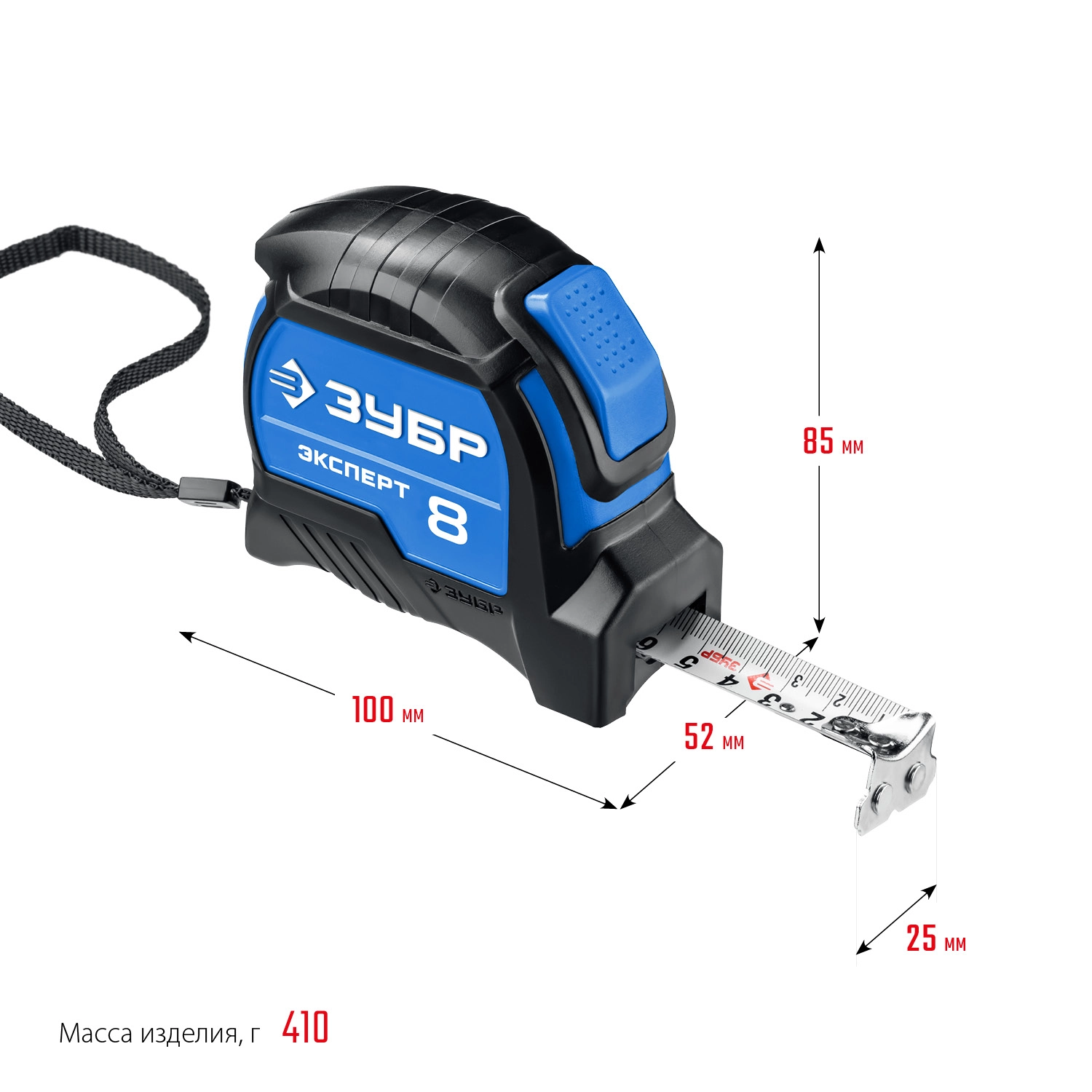 ПроизводителиРулетка 8м/25мм, автостоп, нейлон. покр., магн., прорез. корпус, быт. (34057-08-25_z02) ЗУБР