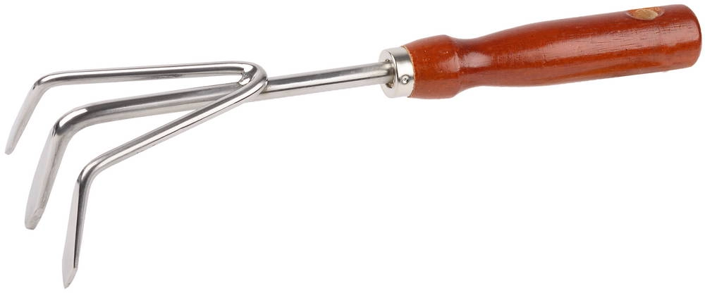 Ручной садово-огородный инструмент из нержавеющей стали с деревянной ручкой создан специально для качественной и неутомительной обработки почвы. Рабочая часть всех инструментов выполнена из высококачественной стали, не подверженной коррозии. Рукоятки эргономичной формы изготовлены из дерева твердых пород, отполированы, покрыты лаком и имеют удобное отверстие для подвеса. Применяется для рыхления почвы вокруг растений и удаления сорняков.