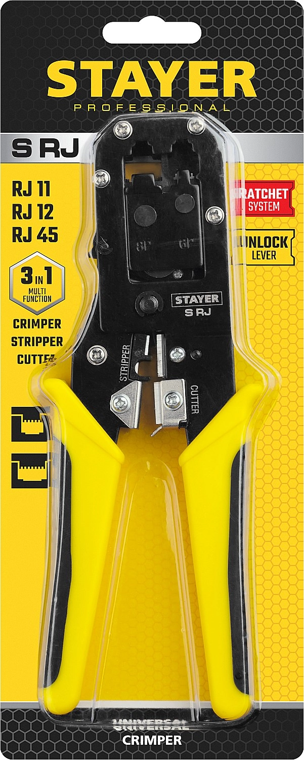 ПроизводителиКримпер универсальный, RJ45, RJ11/RJ12, "S-RJ" "Professional" (22652) STAYER