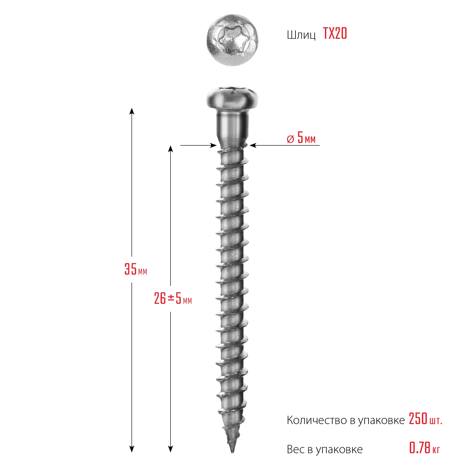 - Износостойкий шлиц TORX предотвращает срывание биты при закручивании и обеспечивает большой крутящий момент.