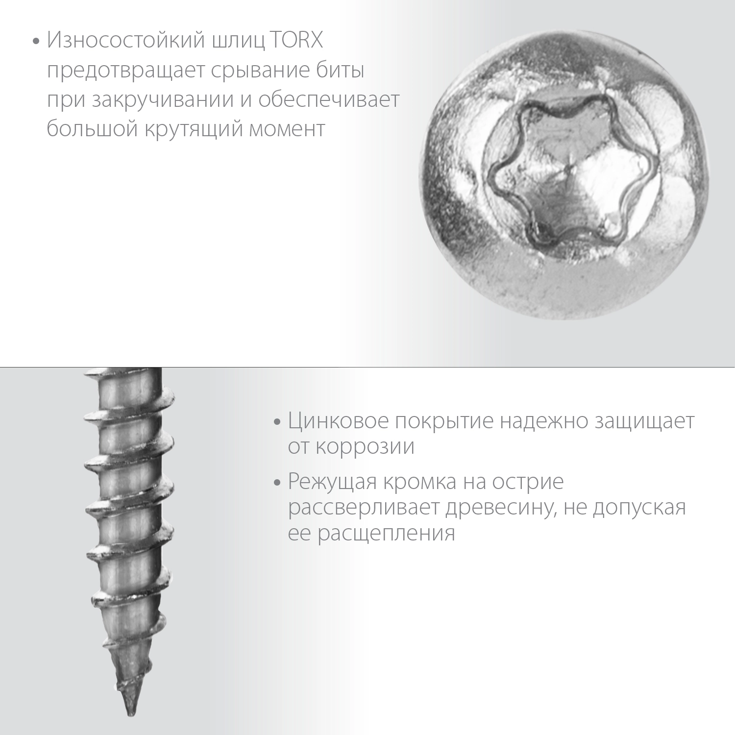 - Износостойкий шлиц TORX предотвращает срывание биты при закручивании и обеспечивает большой крутящий момент.