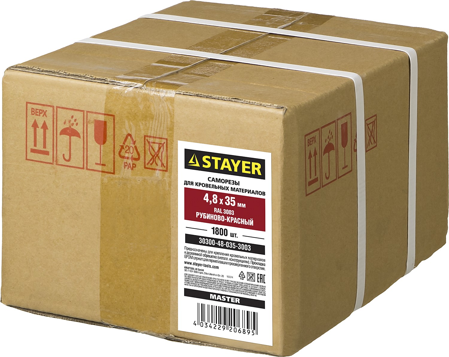 ПроизводителиСаморез кровельный СКД RAL 3003 рубин.-красн., 35х4.8мм, 1800 шт (30300-48-035-3003) STAYER