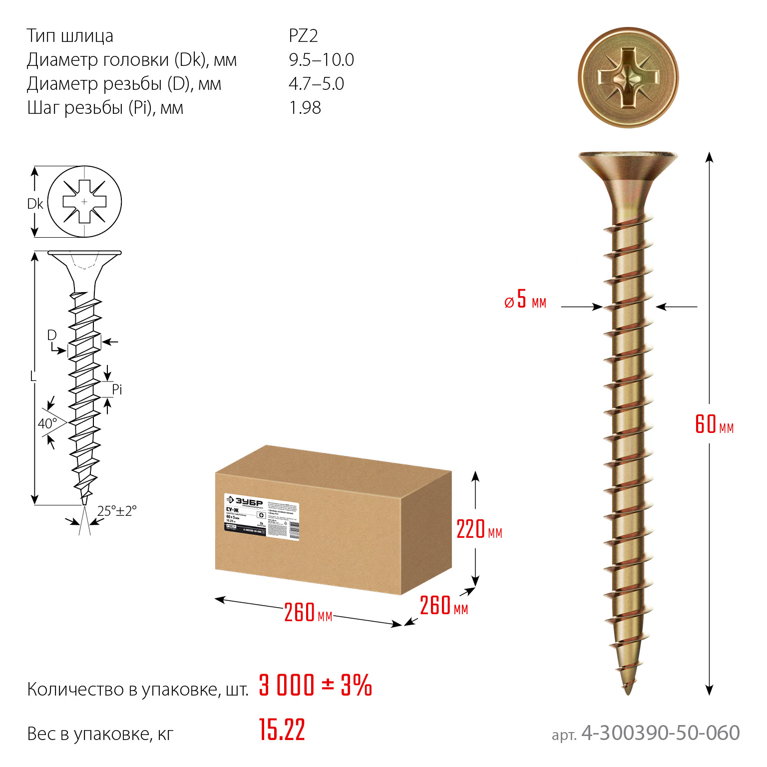 ПроизводителиСаморез универсальный СУ-Ж 60х5.0мм, желтый цинк, 15.22кг (4-300390-50-060_z01) ЗУБР