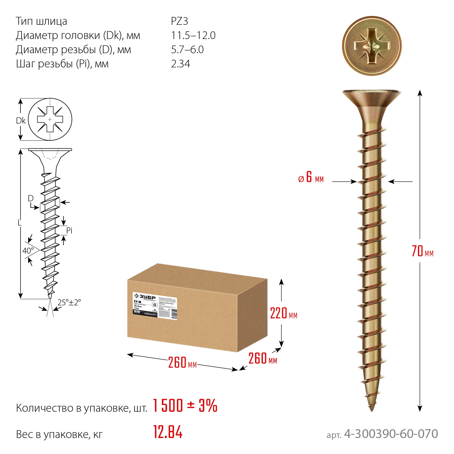 ПроизводителиСаморез универсальный СУ-Ж 70х6.0мм, желтый цинк, 12.84кг (4-300390-60-070_z01) ЗУБР