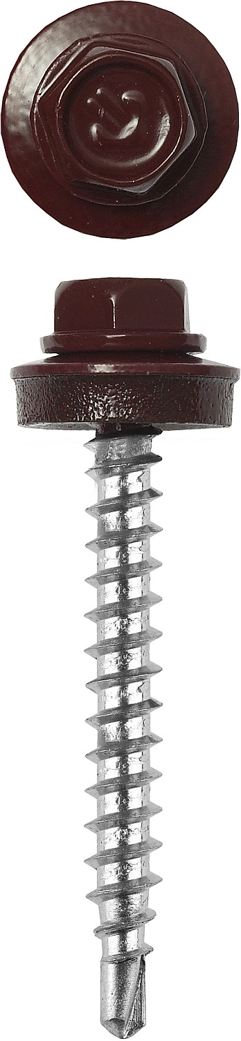 ПроизводителиСаморез кровельный для дер. обр. Ø 65x4.8мм RAL 3005 красный 180шт. (4-300315-48-065-3005) ЗУБР