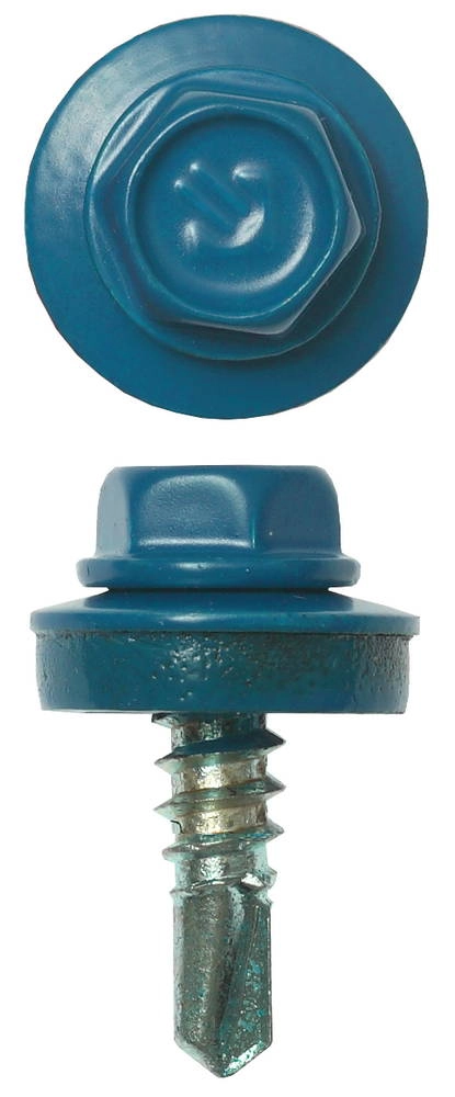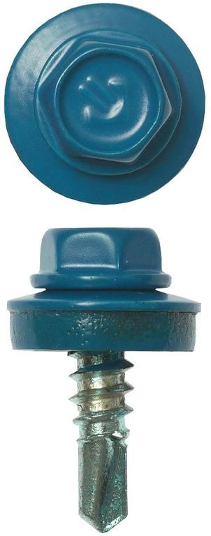 ПроизводителиСаморез кровельный для мет. конст. Ø 19x5.5 мм RAL 5009 голубой 2500шт. (4-300310-55-019-5009) ЗУБР