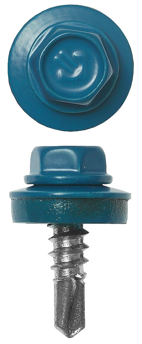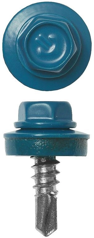ПроизводителиСаморез кровельный для мет. конст. Ø 25x5.5 мм RAL 5009 голубой 1800шт. (4-300310-55-025-5009) ЗУБР