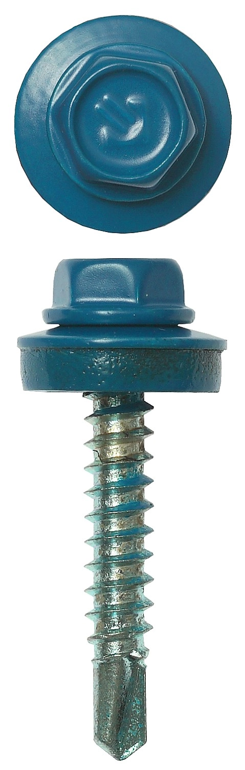 ПроизводителиСаморез кровельный для дер. обр. Ø 29x4.8мм RAL 5009 голубой 400шт. (4-300315-48-029-5009) ЗУБР