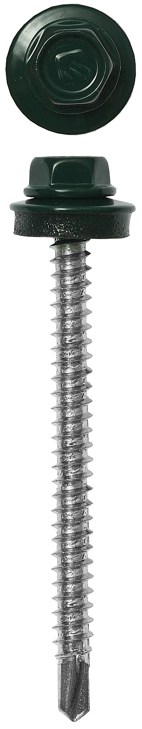 ПроизводителиСаморез кровельный для дер. обр. Ø 35x4.8мм RAL 6005 зеленый 1800шт. (4-300310-48-035-6005) ЗУБР
