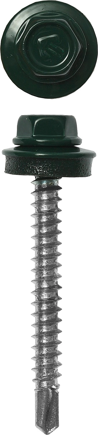 ПроизводителиСаморез кровельный для дер. обр. Ø 70x4.8мм RAL 6005 зеленый 160шт. (4-300315-48-070-6005) ЗУБР