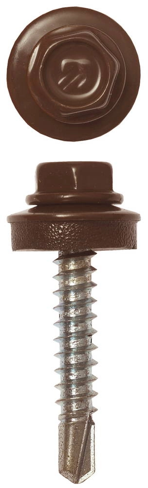 ПроизводителиСаморез кровельный для дер. обр. Ø 29x4.8мм RAL 8017 коричневый 2500шт. (4-300310-48-029-8017) ЗУБР