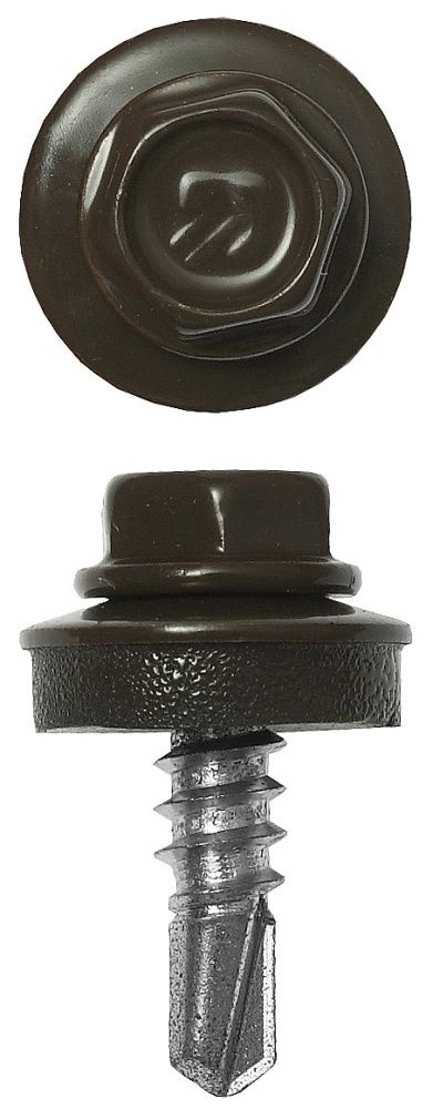 ПроизводителиСаморез кровельный для мет. конст. Ø 25x5.5 мм RAL 8028 коричнев 1800шт. (4-300310-55-025-8028) ЗУБР