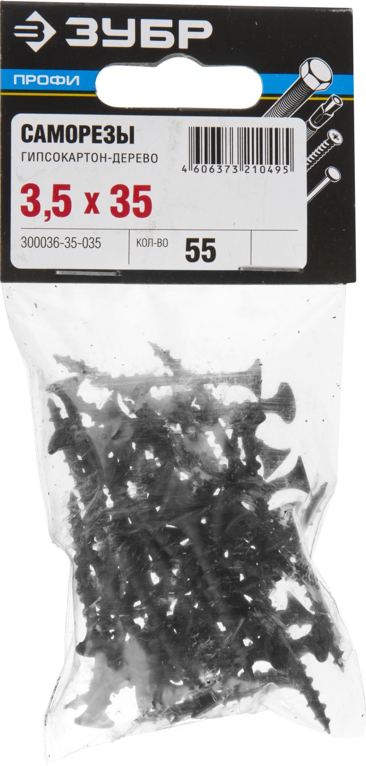 ПроизводителиСаморез для крепления ГКЛ в дерево Ø 35x3.5 мм крупный шаг фосфат 55шт. (300036-35-035) ЗУБР