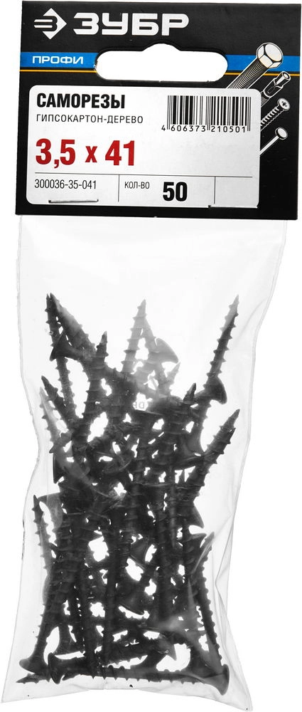 ПроизводителиСаморез для крепления ГКЛ в дерево Ø 41x3.5 мм крупный шаг фосфат 50шт. (300036-35-041) ЗУБР
