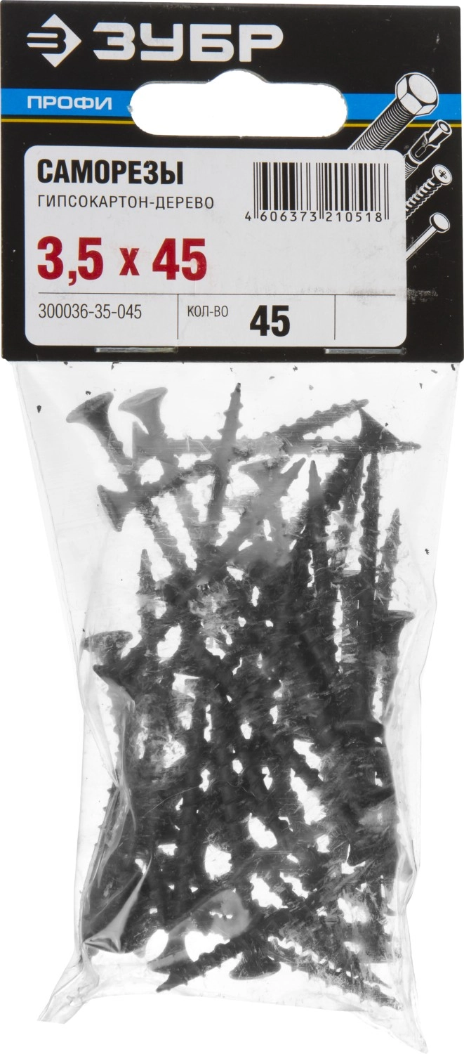 ПроизводителиСаморез для крепления ГКЛ в дерево Ø 45x3.5 мм крупный шаг фосфат 45шт. (300036-35-045) ЗУБР