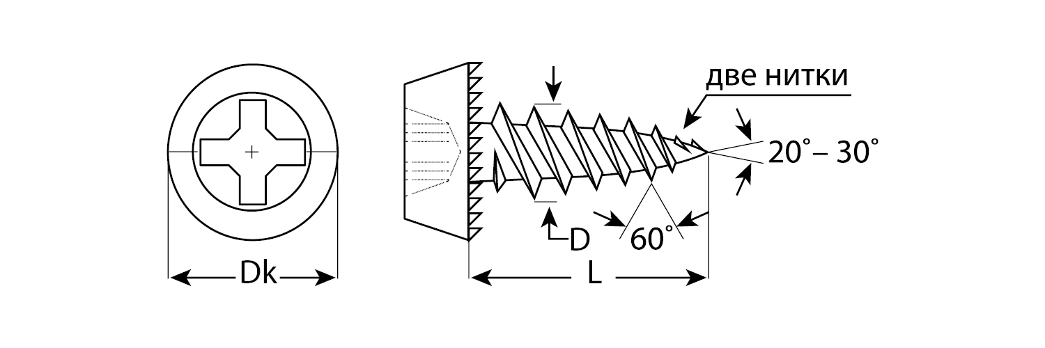 Саморезы легко вкручиваются обычным шуруповертом или отверткой с крестообразным шлицем PH2 (DIN). Предварительное сверление в скрепляемых материалах не требуется.