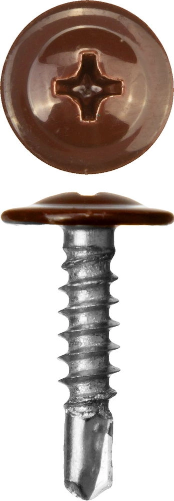 ПроизводителиСаморез с пресс шайбой Ø 4.2х16 мм RAL 8017 коричневый сверло 500шт. (300211-42-016-8017) ЗУБР