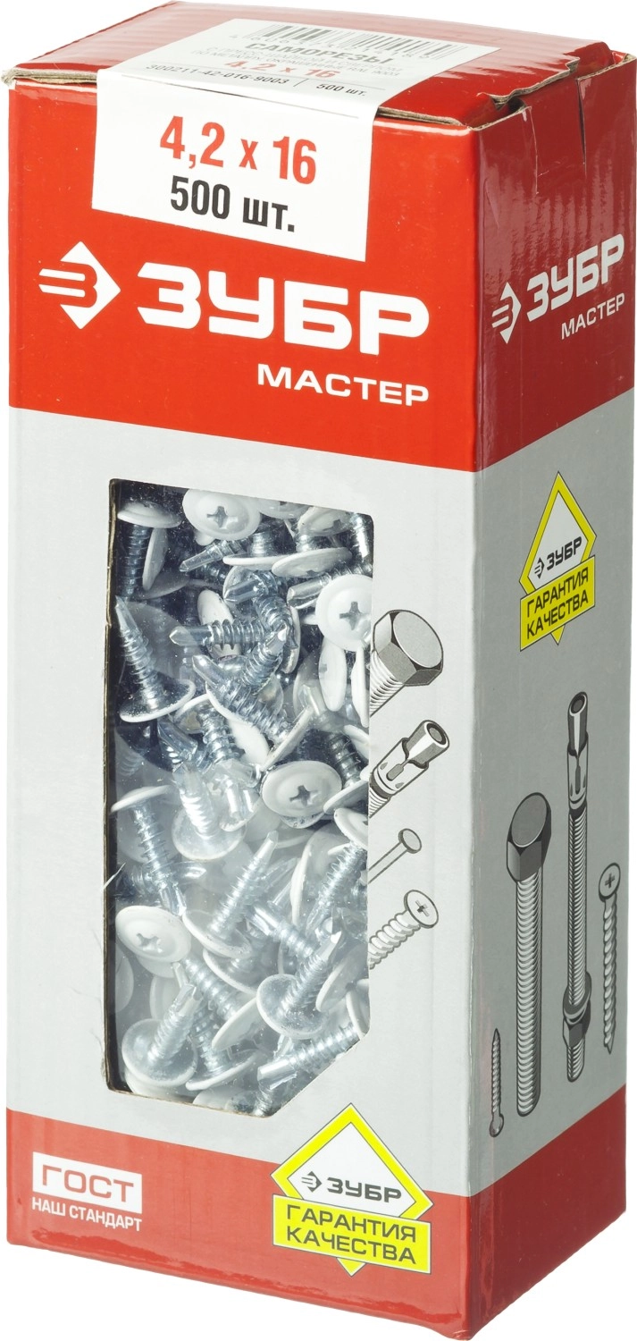 ПроизводителиСаморез с пресс шайбой Ø 4.2х16 мм RAL 9003 белый сверло 500шт. (300211-42-016-9003) ЗУБР