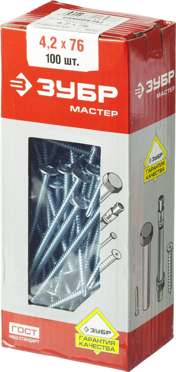 ПроизводителиСаморез с пресс шайбой Ø 4.2х76 мм цинк сверло 100шт. (4-300211-42-076) ЗУБР