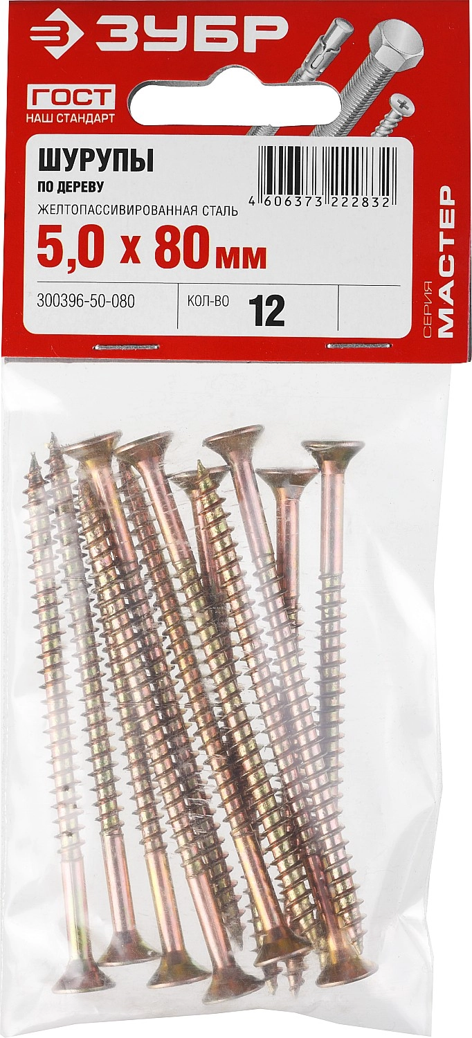 ПроизводителиСаморез универсальный Ø 5.0x80 мм желтый цинк острый 12шт. (300396-50-080) ЗУБР