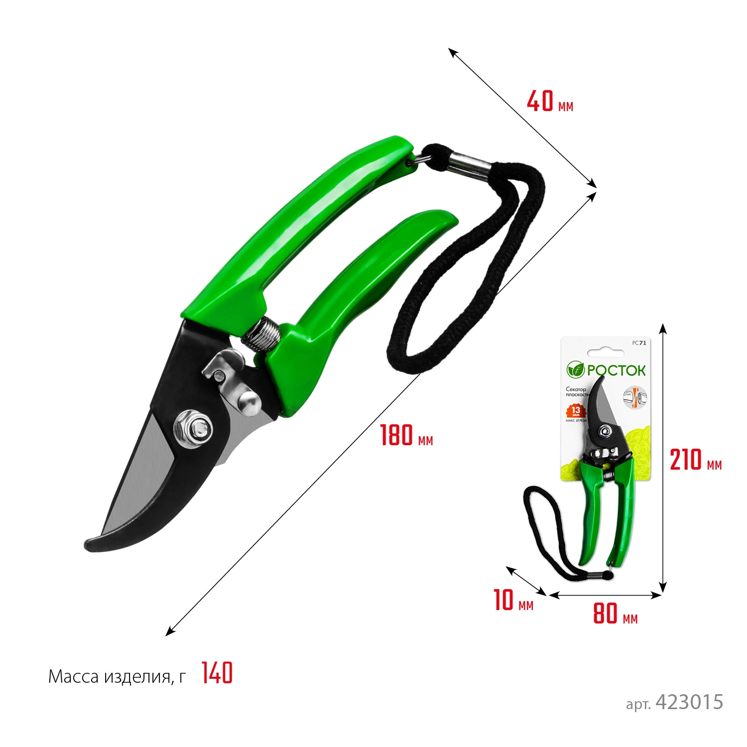 ПроизводителиСекатор плоскостной 180 мм, компактный, угл. сталь, оксид. покрытие, пласт. рукоятки (423015) РОСТОК