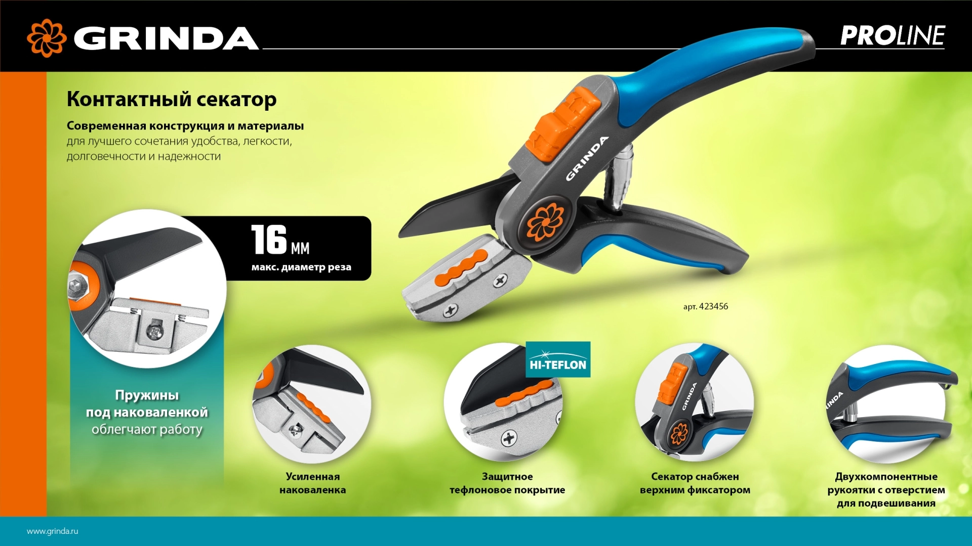 Бренд: GRINDAПрофессиональные секаторы GRINDA PRO-LINE характеризуются самыми надёжными и современными материалами. Пользуясь этими секаторами вы обеспечите себе удовольствие и комфорт при работах в саду.