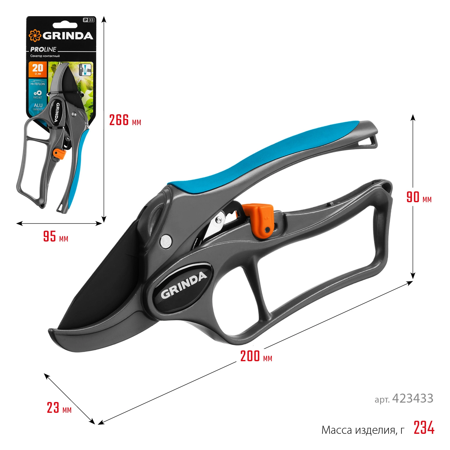 ПроизводителиСекатор с алюминиевыми рукоятками, с эфесом, контактный, 200 мм, P-33 PROLine (423433) GRINDA