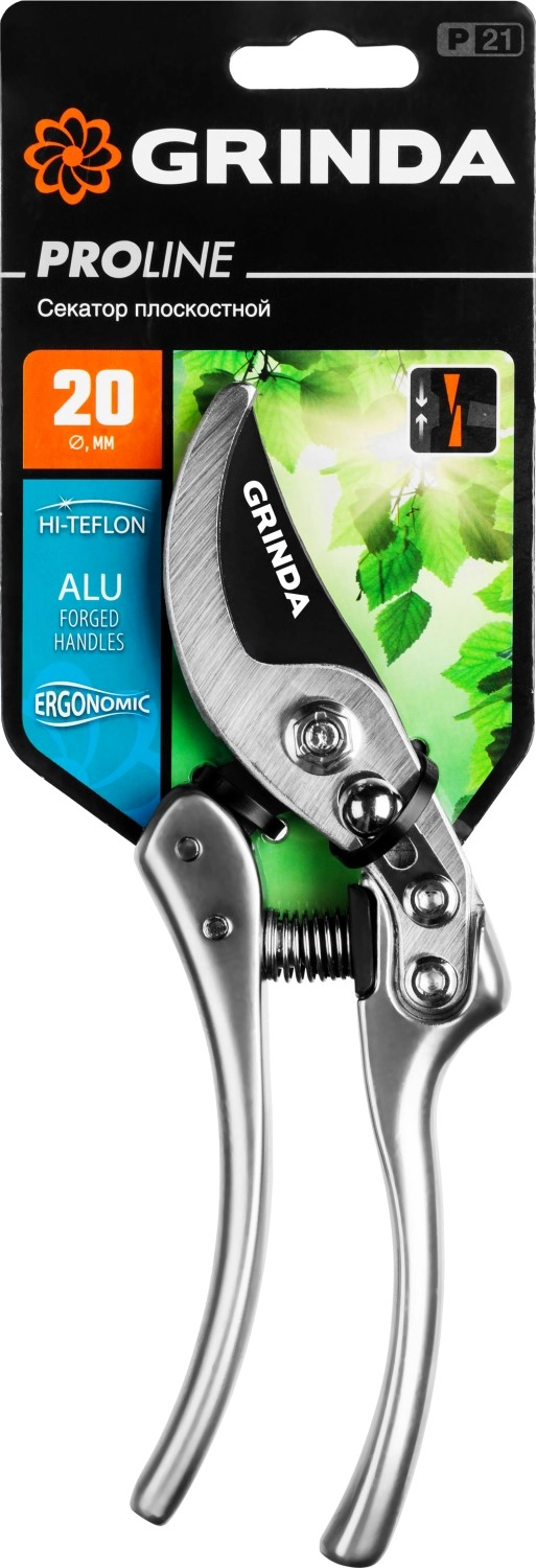 ПроизводителиСекатор с алюминиевыми коваными рукоятками, плоскостной, 210 мм, P-21 PROLine (423421) GRINDA