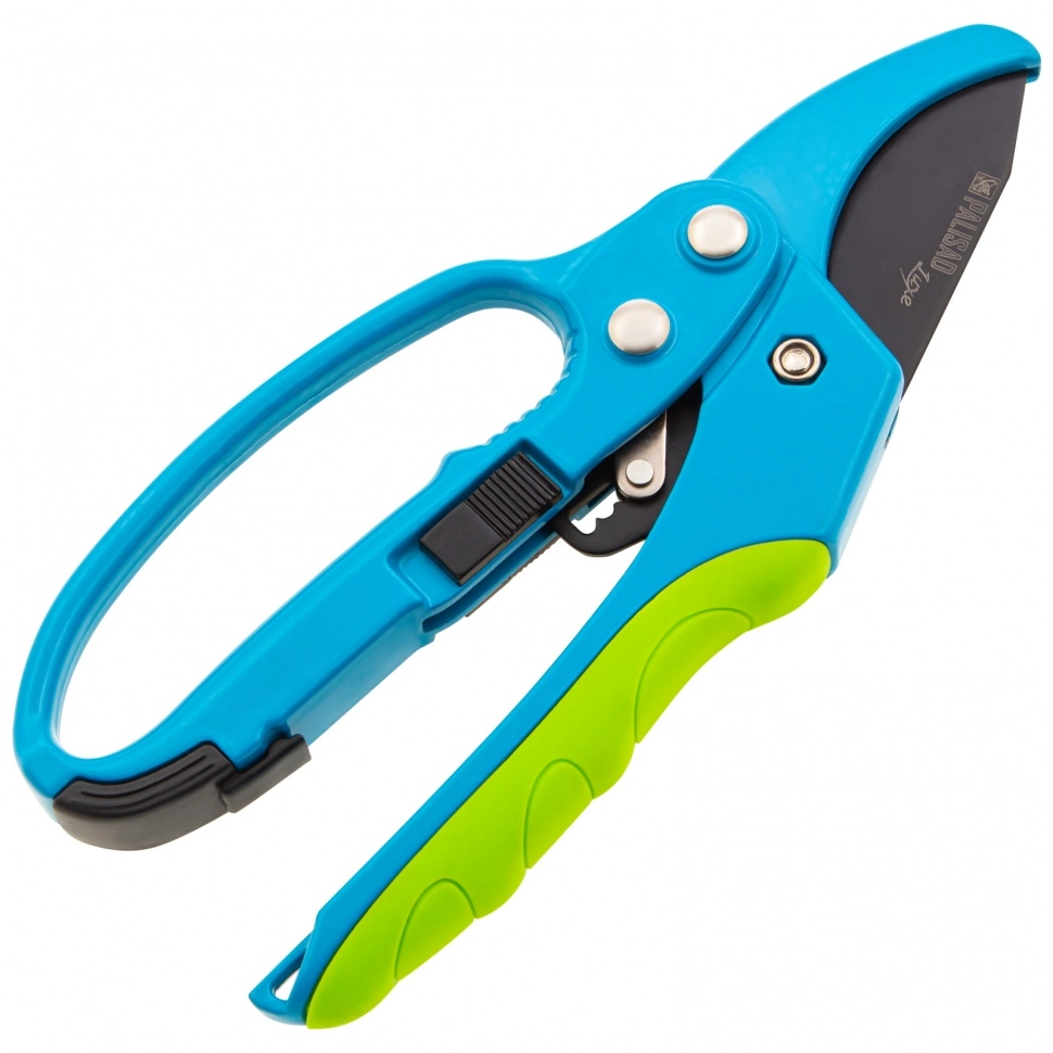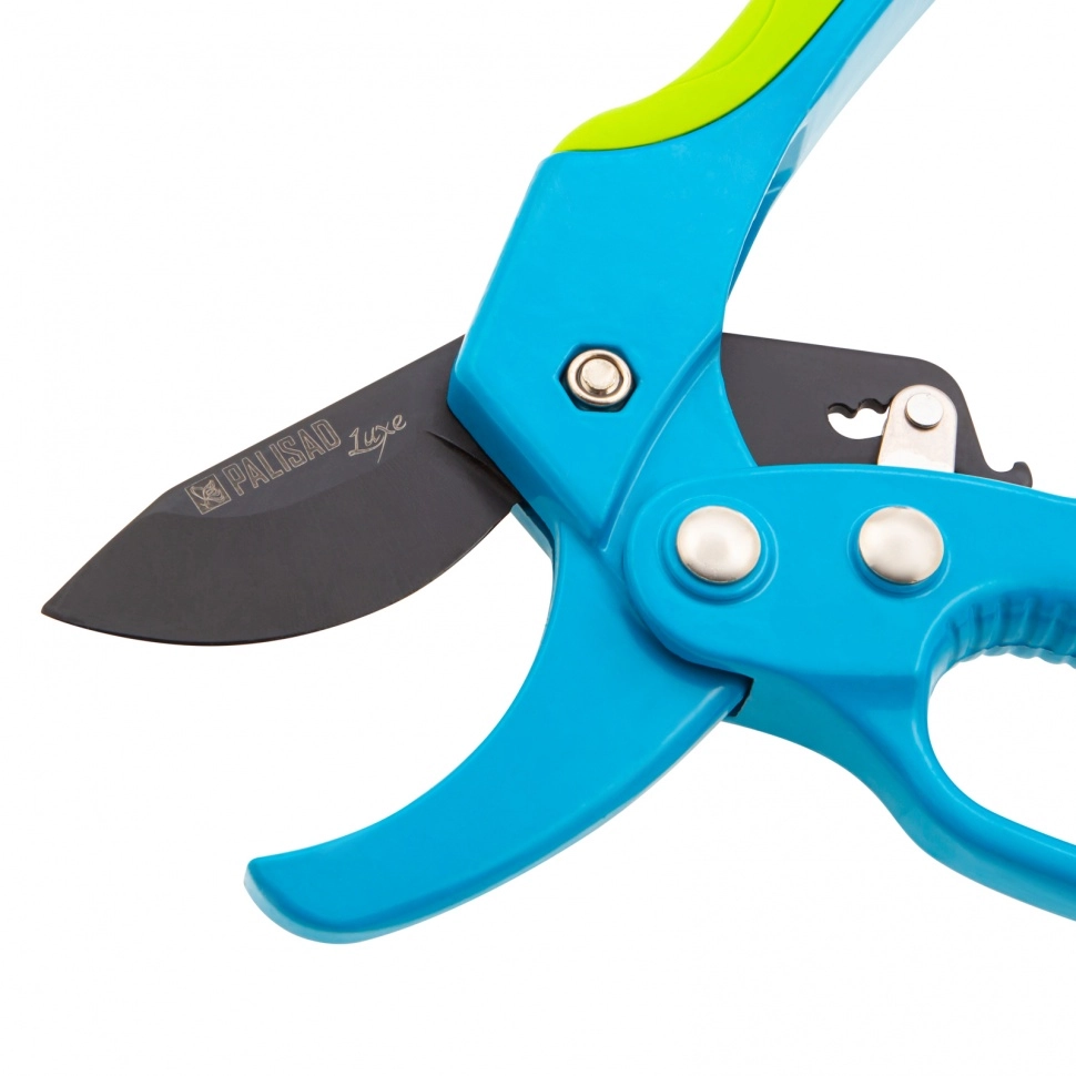 Секатор прямого реза Palisad LUXE 60560 длиной 200 мм, с храповым механизмом и металлическими обрезиненными рукоятками, используется для обрезки живых, сухих и увядших веток диаметром до 30 мм.
