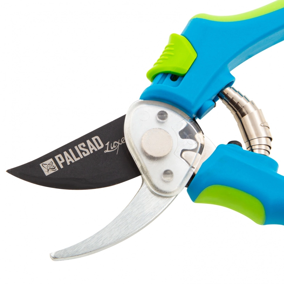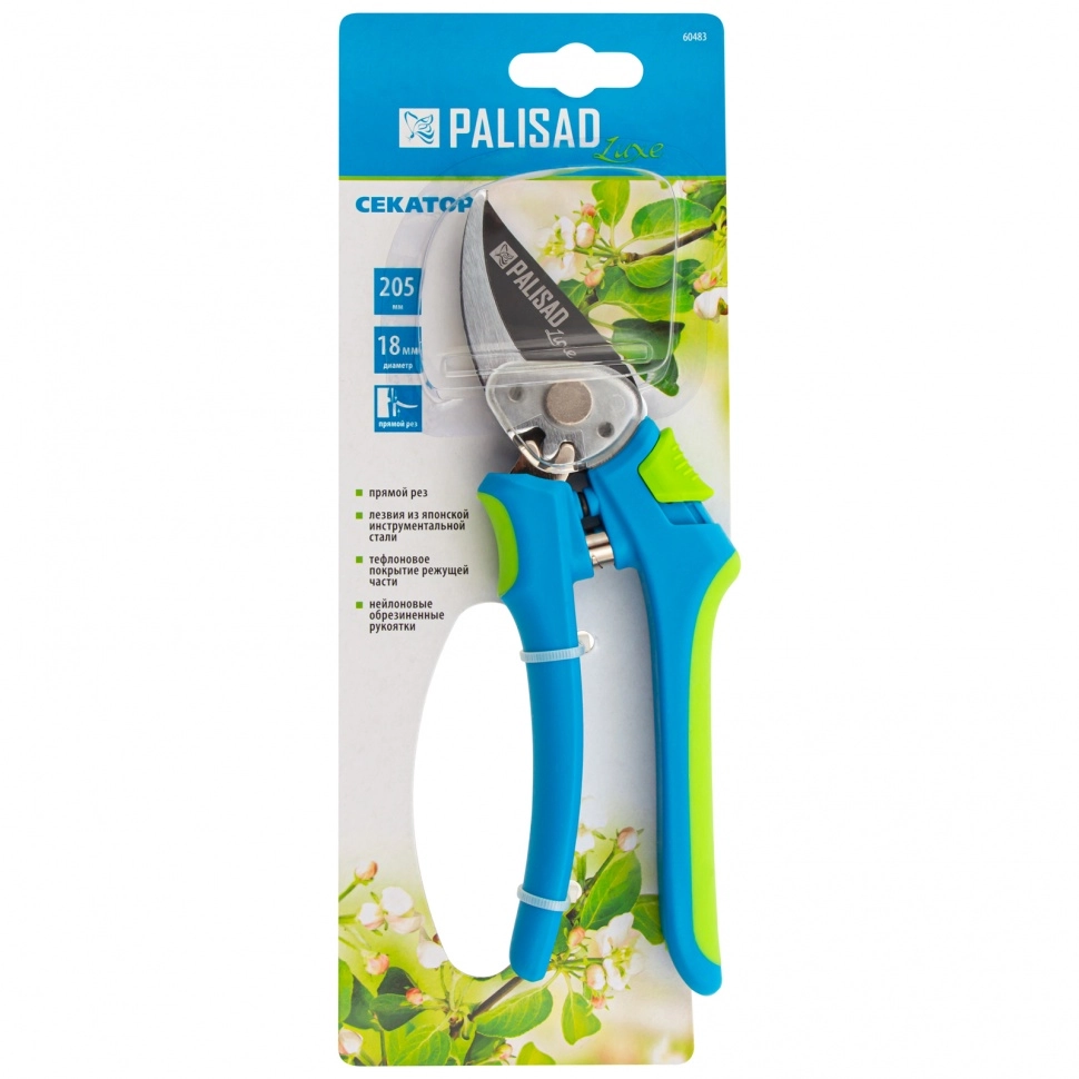 Секатор прямого реза Palisad LUXE 60483 длиной 205 мм, с двухкомпонентными рукоятками, — инструмент для срезания живых веток диаметром до 18 мм.