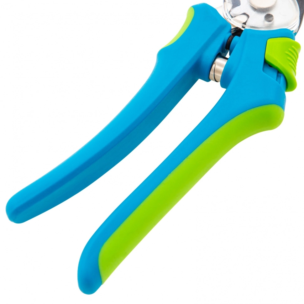 Лезвия двигаются в параллельных плоскостях, поэтому рез получается гладким и аккуратным, а растение получает минимальные повреждения.