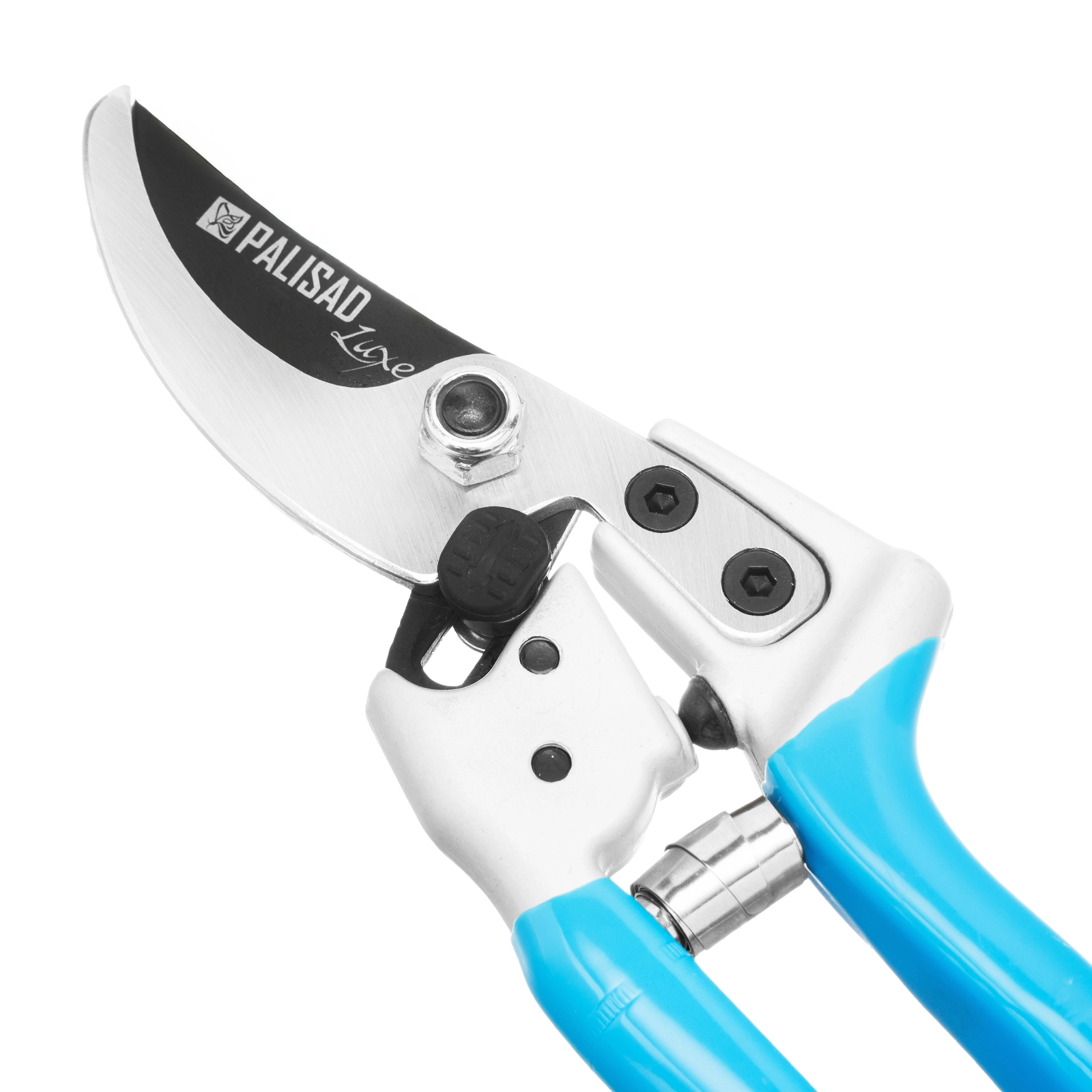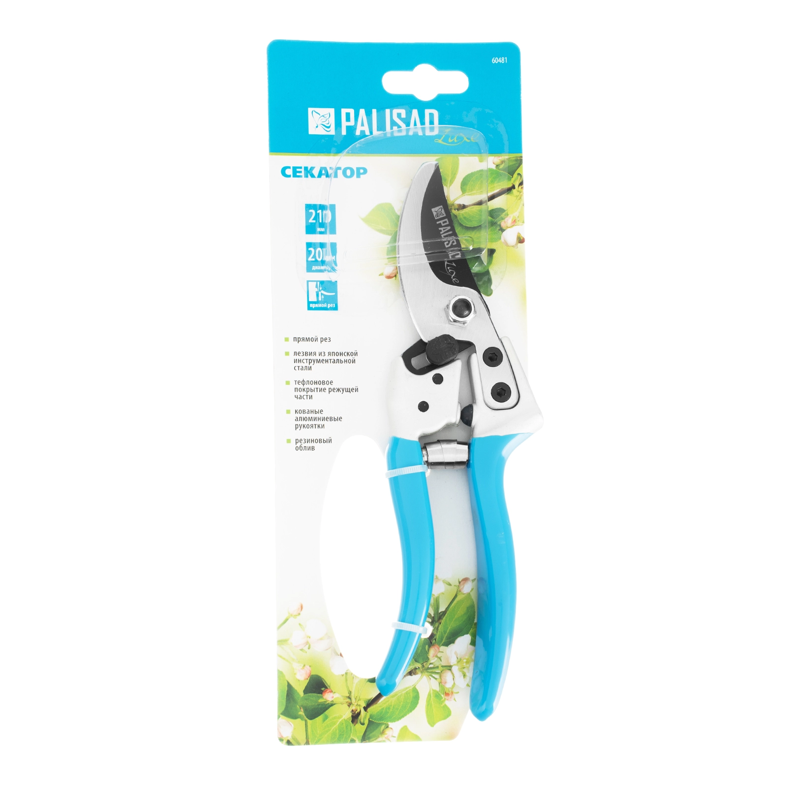 Секатор прямого реза Palisad LUXE 60481 длиной 210 мм, с металлическими рукоятками в ПВХ-оболочке, позволяет чисто обрезать живые ветки толщиной до 20 мм, причиняя растению минимальный вред.