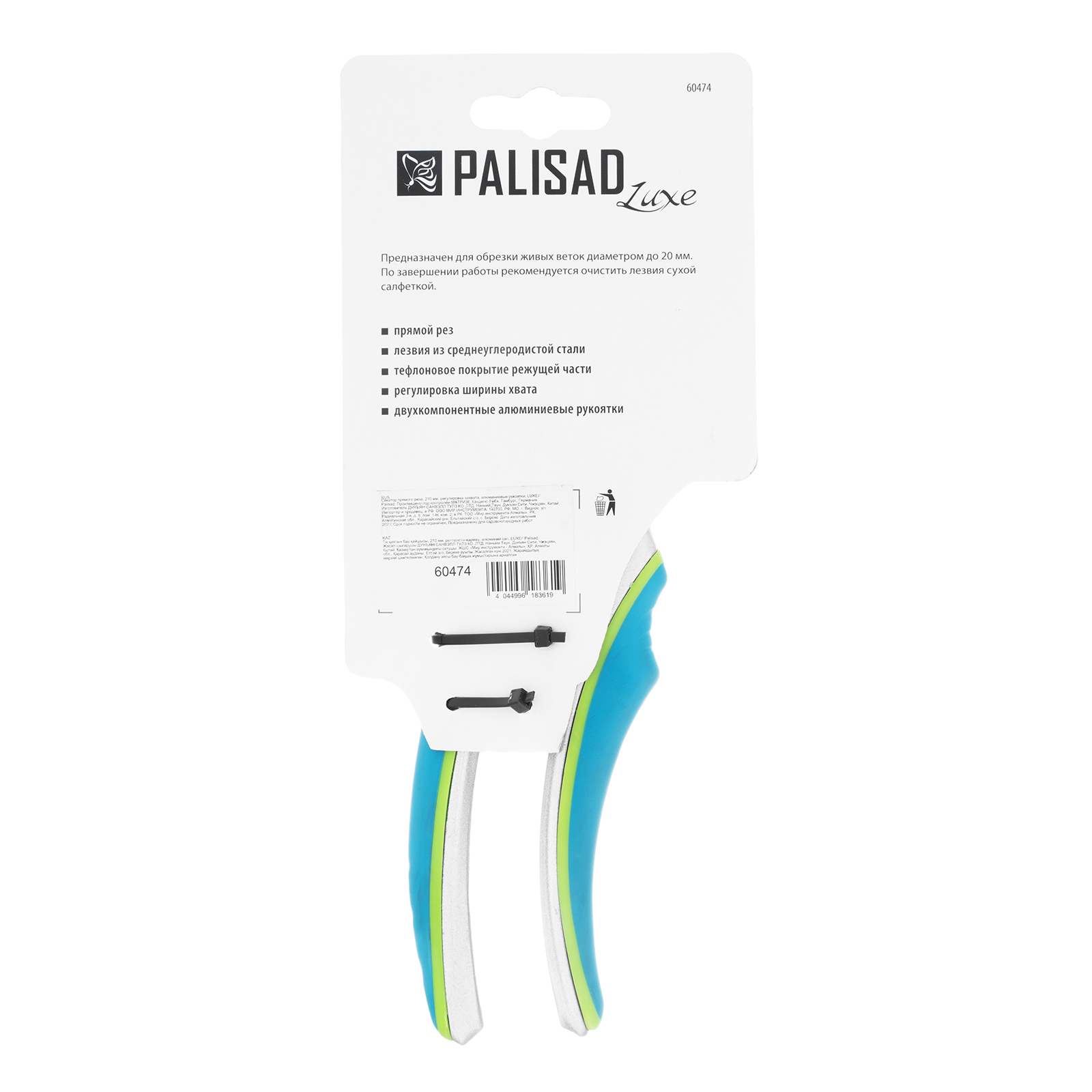 Секатор прямого реза Palisad LUXE 60474 длиной 210 мм, с регулировкой захвата, с алюминиевыми рукоятками, — инструмент для обрезки живых веток толщиной до 20 мм.