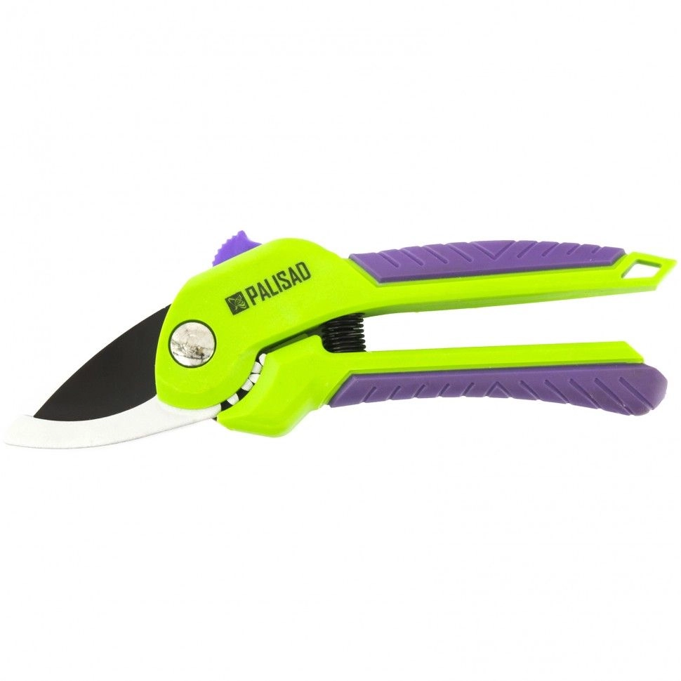 Секатор прямого реза Palisad 60532 длиной 210 мм, с шестеренным приводом и двухкомпонентными рукоятками, используется для щадящей обрезки живых веток толщиной до 20 мм.