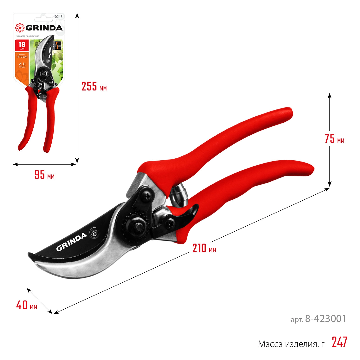 ПроизводителиСекатор с алюминиевыми рукоятками, плоскостной, 210 мм "G-11" (8-423001_z02) Grinda