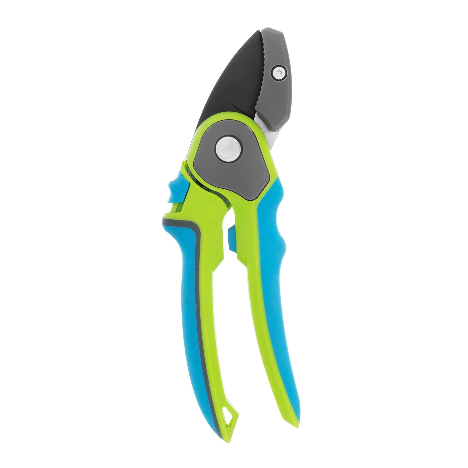 Опорная наковальня с зубчатой поверхностью облегчает захват и фиксацию веток, в том числе гладких.