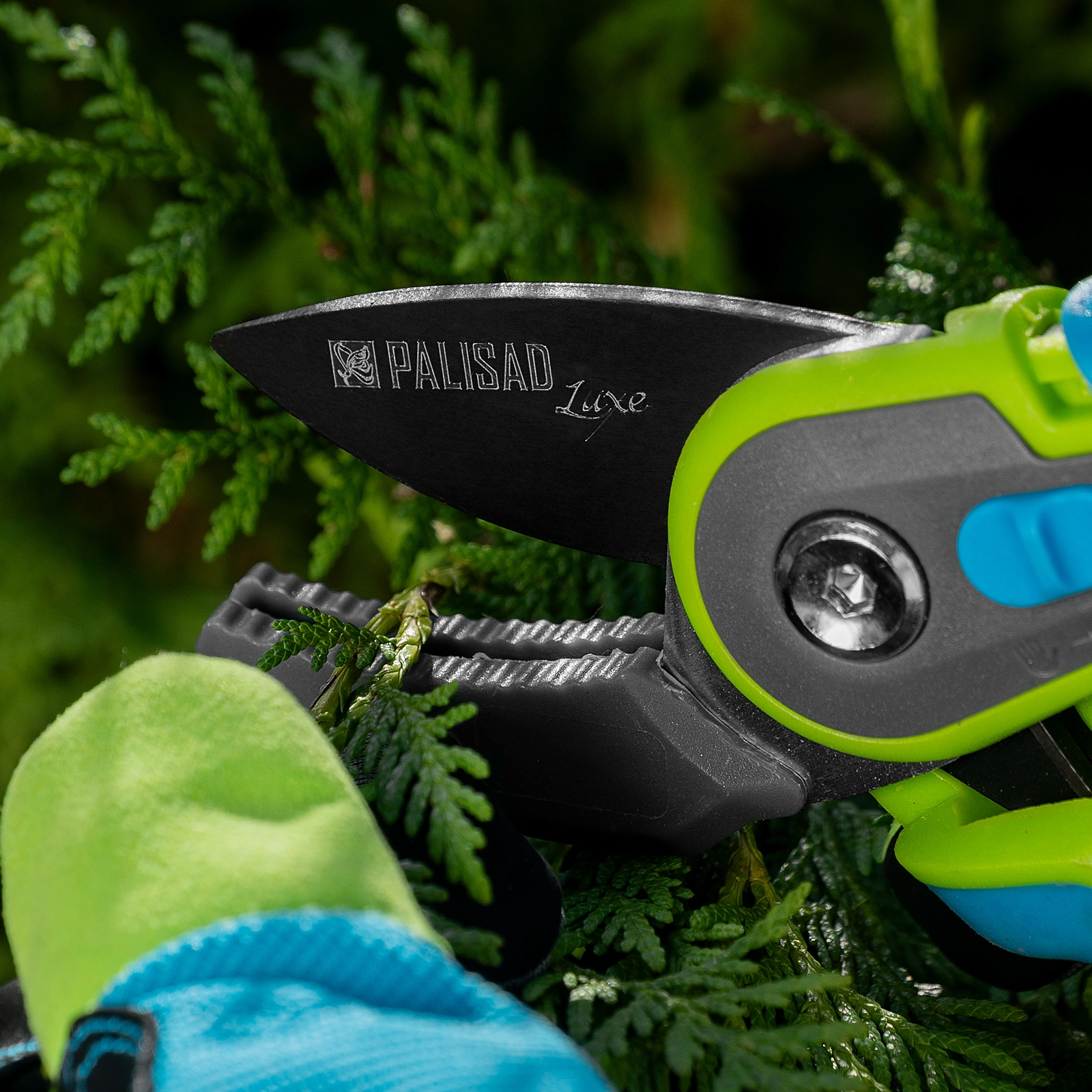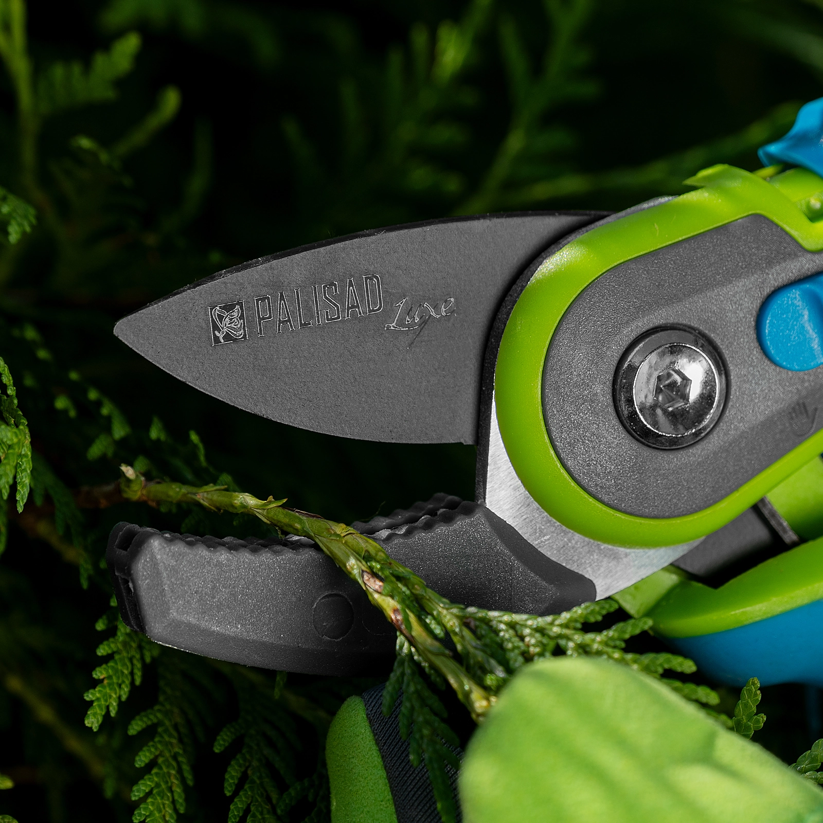Лезвие с тефлоновым покрытием и прецизионной заточкой отсекает ветку быстро и максимально щадяще для растения.
