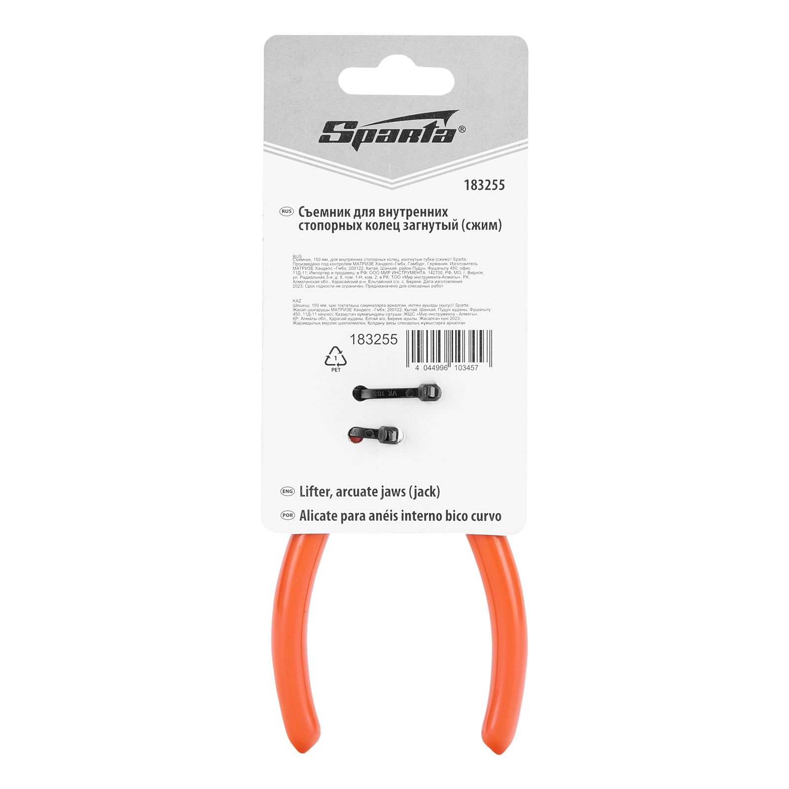 ПроизводителиСъемник 150 мм, изогн. губки (сжим), для внутр. стоп. колец (183255) SPARTA