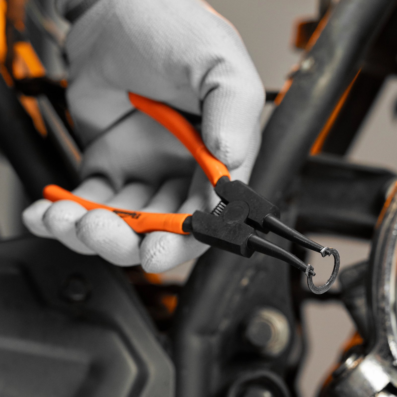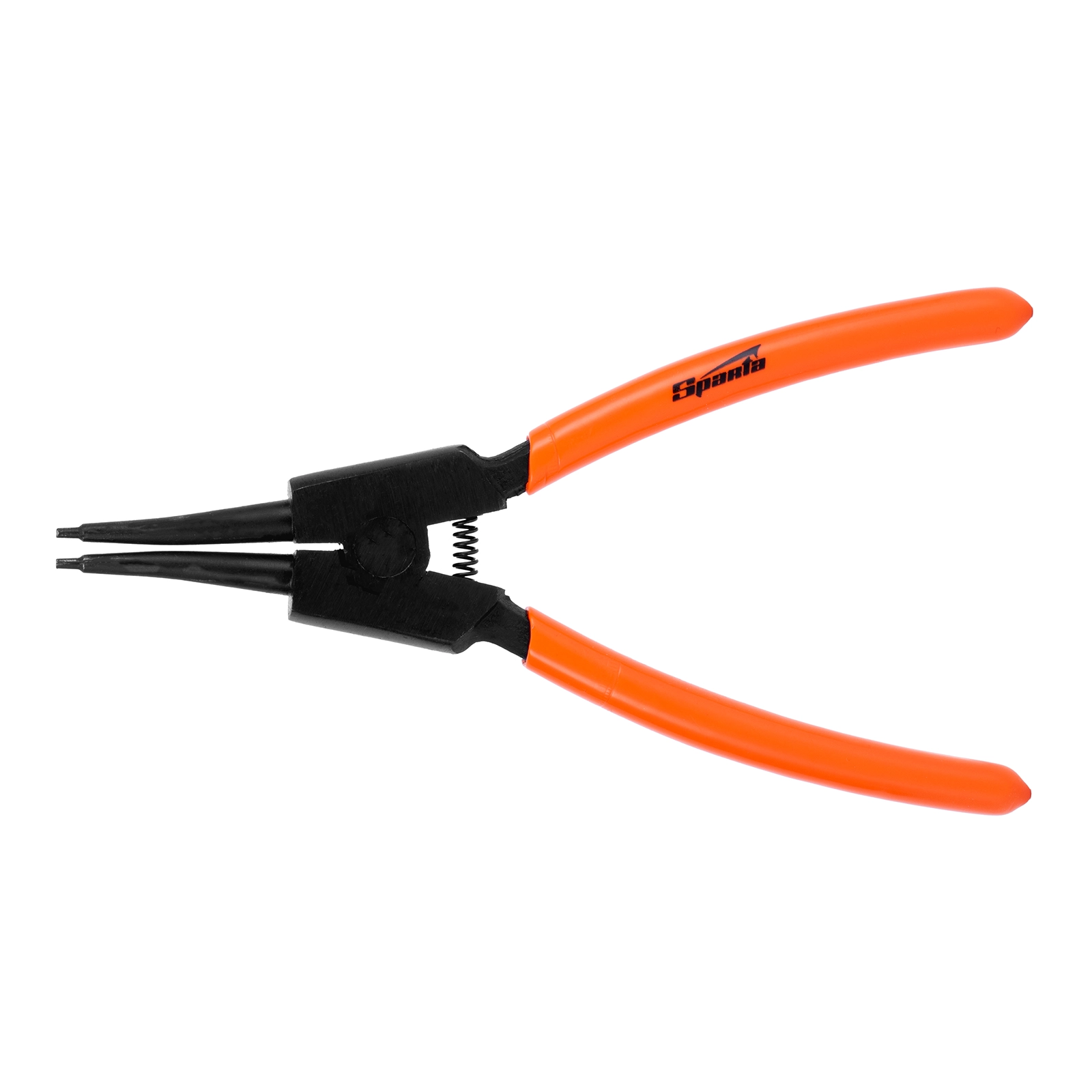 Съемник для внешних стопорных колец SPARTA 183305 с прямыми наконечниками. Он применяется для работы с внешними стопорными кольцами. Наконечники данного съемника имеют специальную форму, предотвращающую срыв стопорного кольца.Производитель: ООО "Мир инструмента", Россия