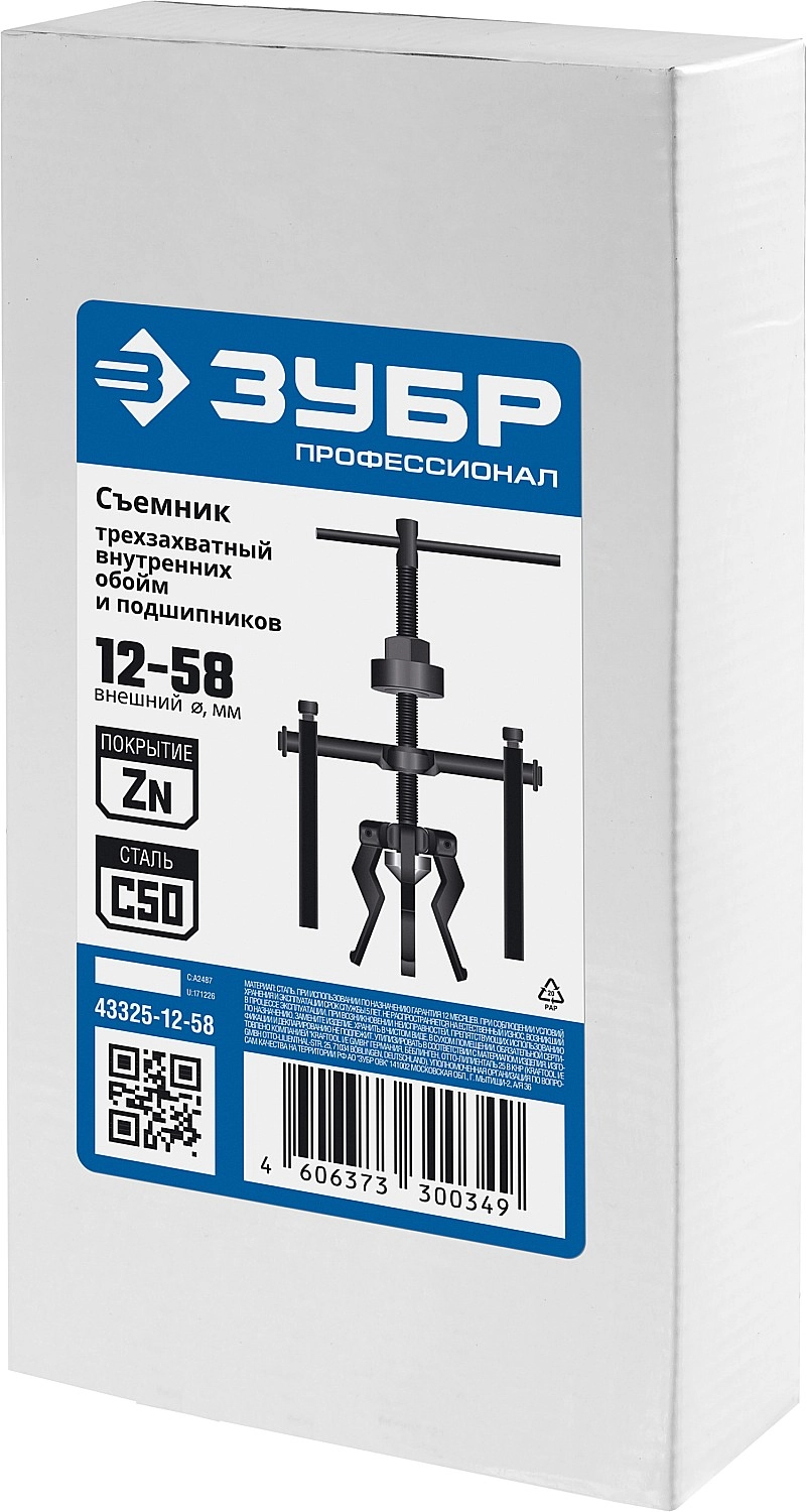 ПроизводителиСъемник подшипников и обойм 3-х захватный 12-58мм "Профессионал" (43325-12-58) ЗУБР