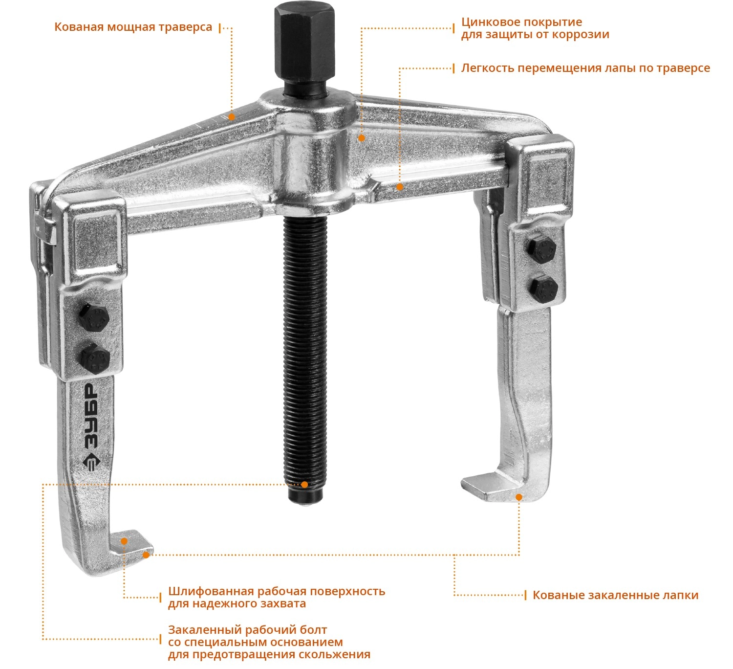 ПроизводителиСъемник раздвижной 2-захватный, 100 мм, Профессионал 43310-160-100 (43310-160-100) ЗУБР