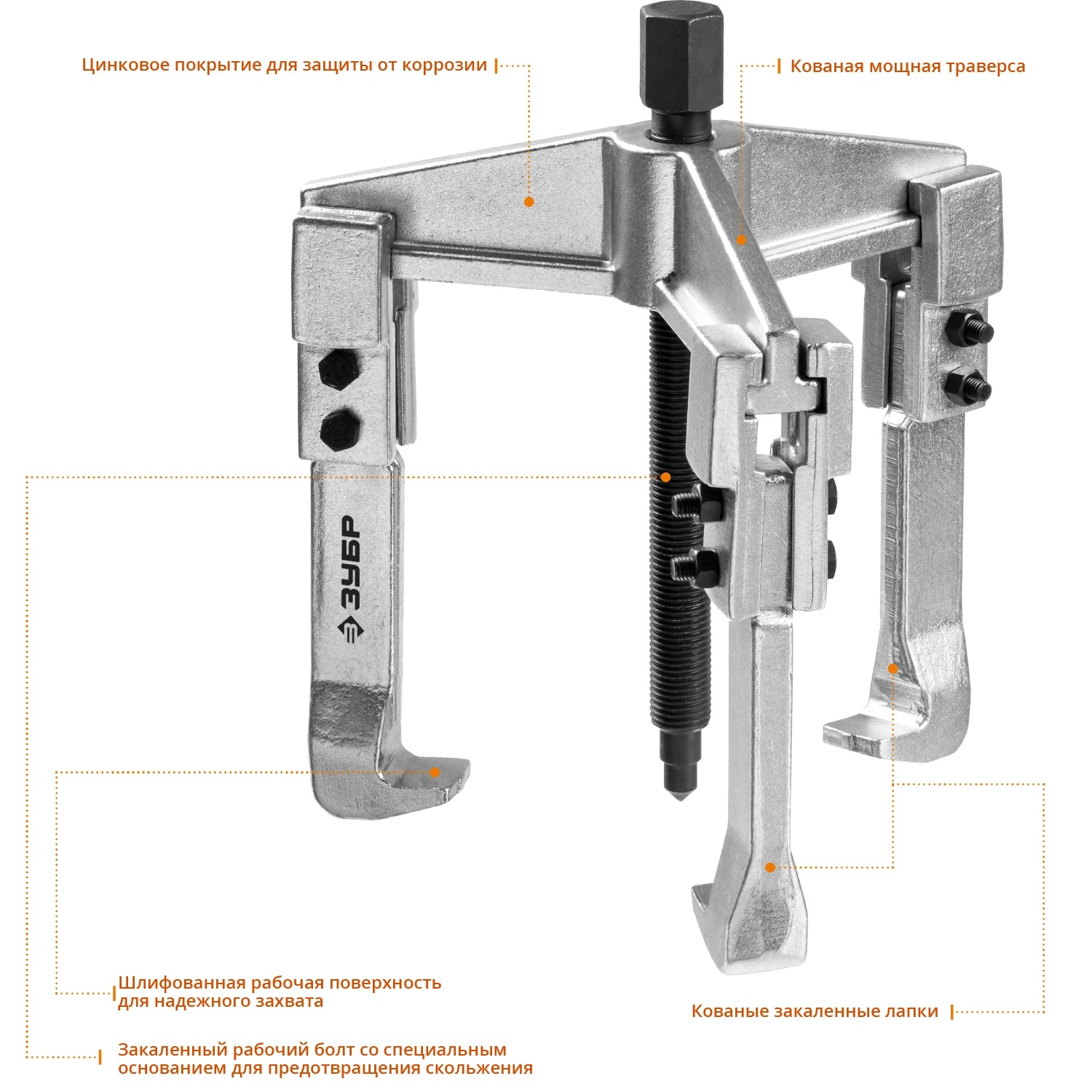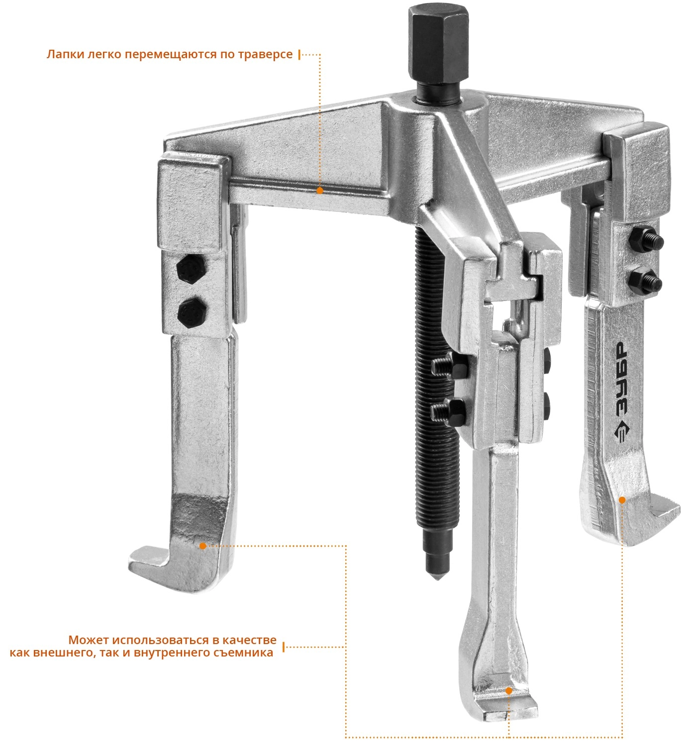 ПроизводителиСъемник раздвижной 3-захватный, 150 мм, Профессионал 43312-180-150 (43312-180-150) ЗУБР