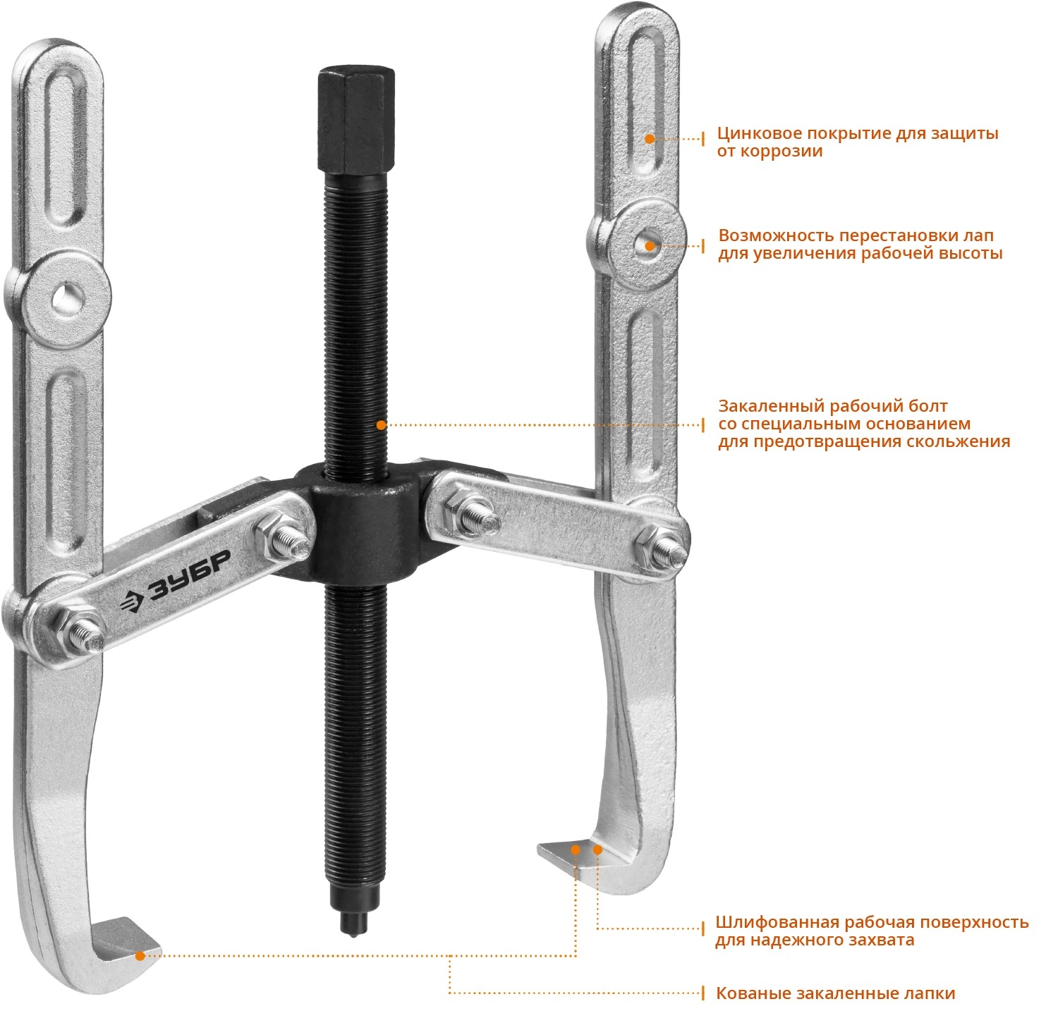 ПроизводителиСъемник шарнирный 2-захватный с удлиненными захватами, 240 мм, ЗУБР Профессионал 43316-240