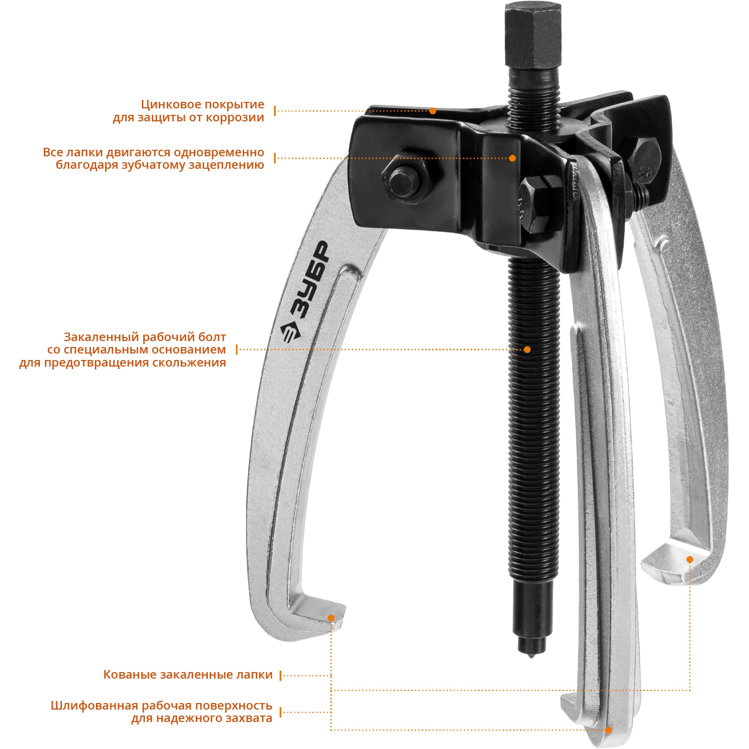ПроизводителиСъемник шарнирный 3-захватный с серповидными захватами, 160 мм, ЗУБР Профессионал 43323-160
