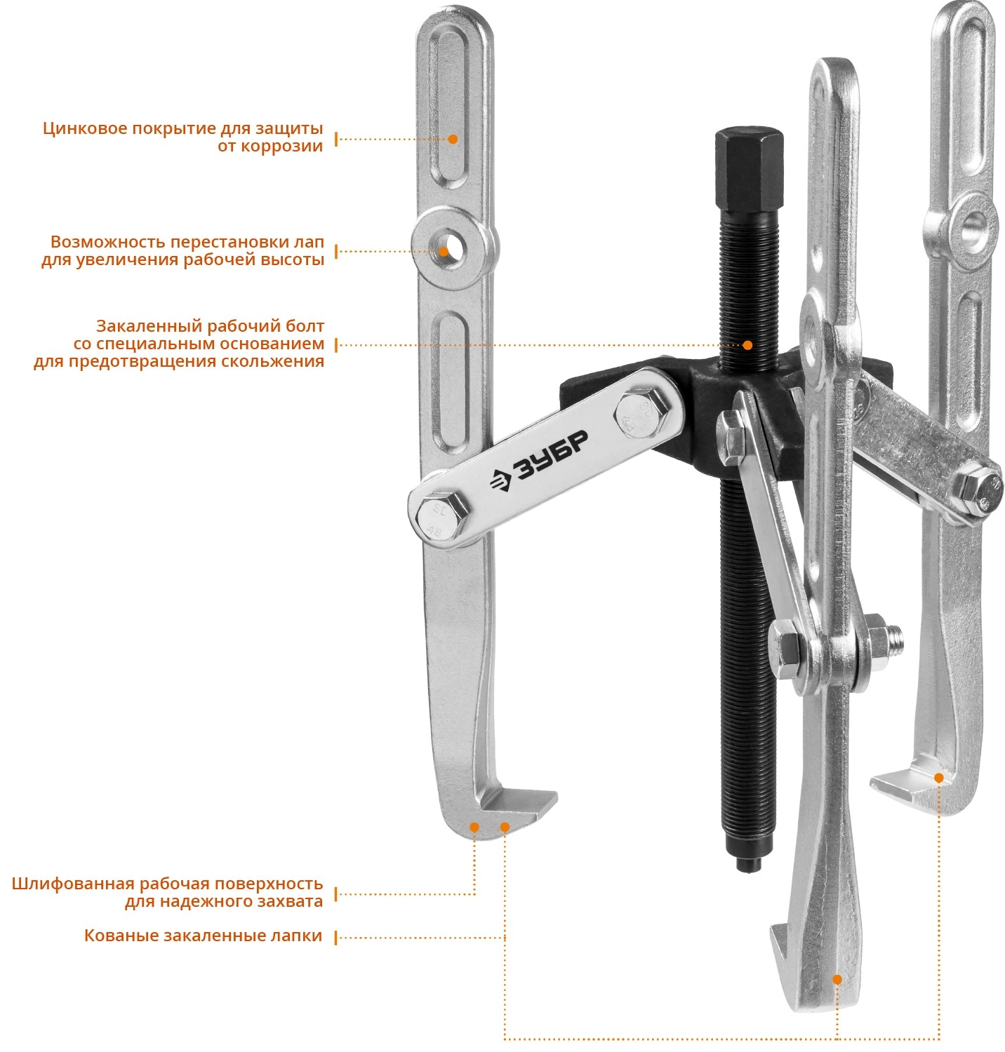 ПроизводителиСъемник подшипников 3-х зажимн., внутр. 55-390мм, внешн. 45-320 "Профессионал" (43319-305) ЗУБР