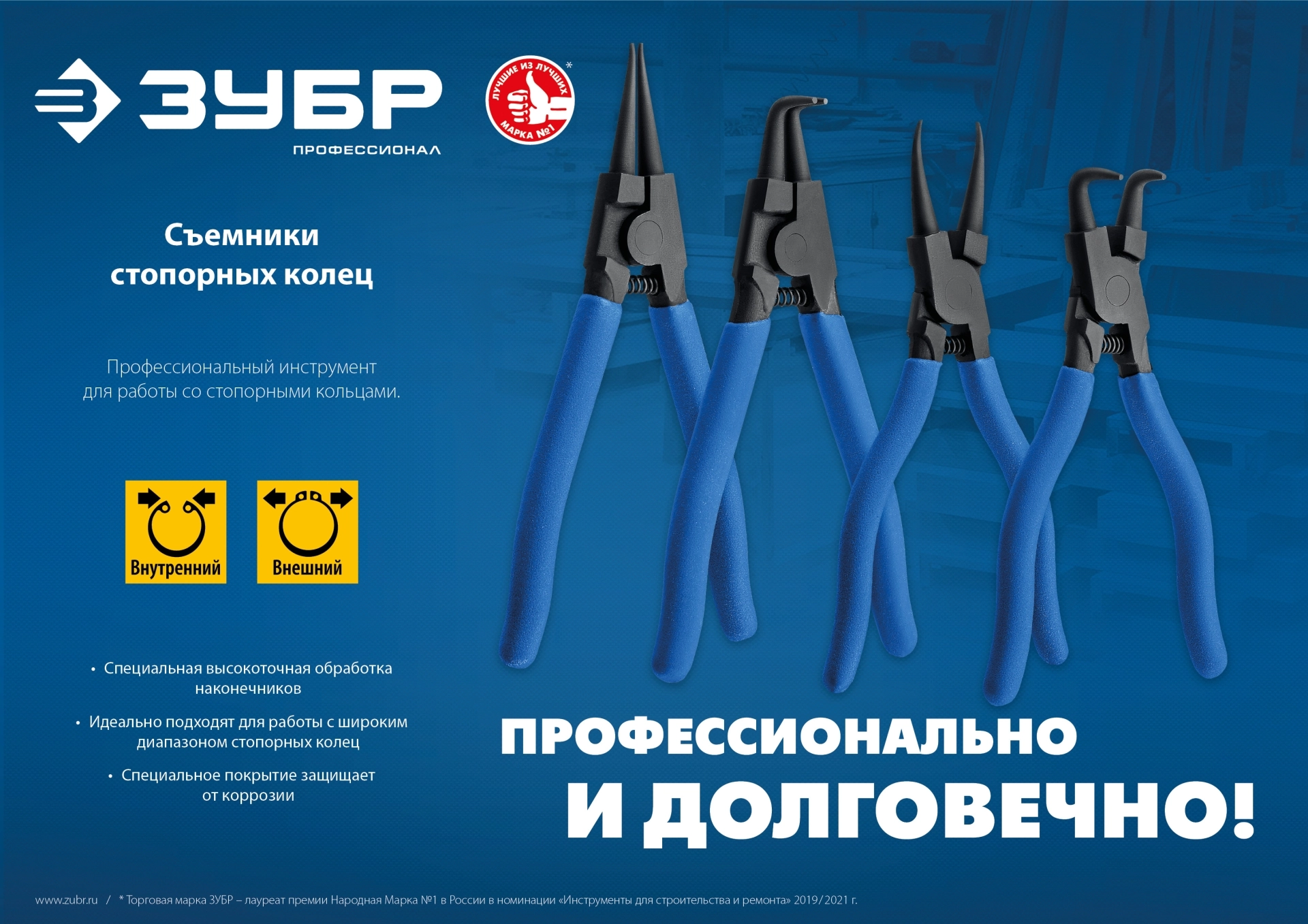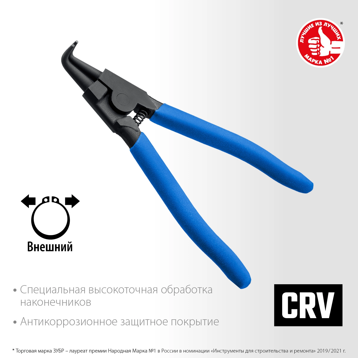 ПроизводителиСъемник стопорных колец 170мм, изогнутые губки, внешний (22821-4) ЗУБР