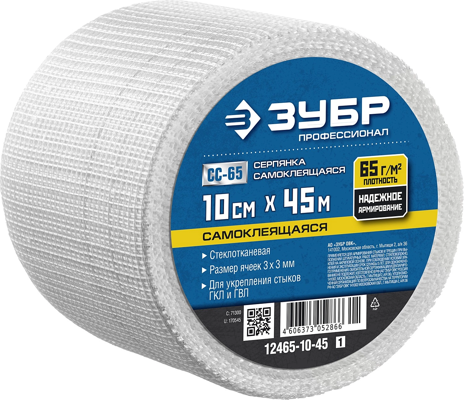 ПроизводителиСетка самоклеящаяся стеклотканевая 3х3 мм 100 мм 45 м (12465-10-45_z01) ЗУБР
